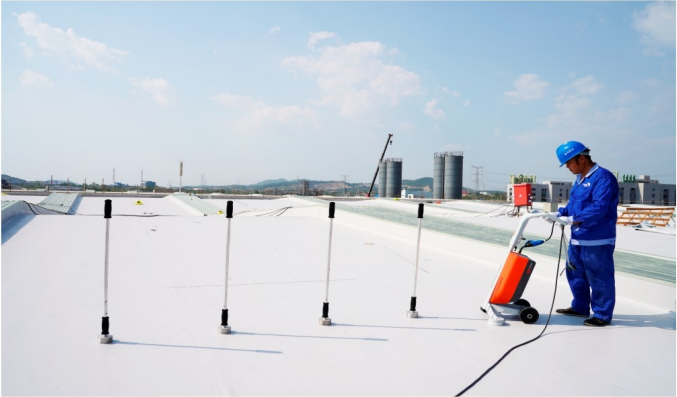 黃岡凱倫新材料科技有限公司是江蘇凱倫建材股份有限公司(以下簡稱凱倫股份)的全資子公司,成立于2015年8月,主要從事高聚物改性瀝青(有胎)防水卷材、自粘聚合物改性瀝青(無胎)防水卷材、防水涂料和聚氨酯地坪漆的研發(fā)、生產(chǎn)和銷售,是凱倫股份全國戰(zhàn)略布局中邁進(jìn)中部市場的重要一步。此項(xiàng)目是凱倫股份黃岡廠房屋面,使用PVC單層屋面防水系統(tǒng)。
